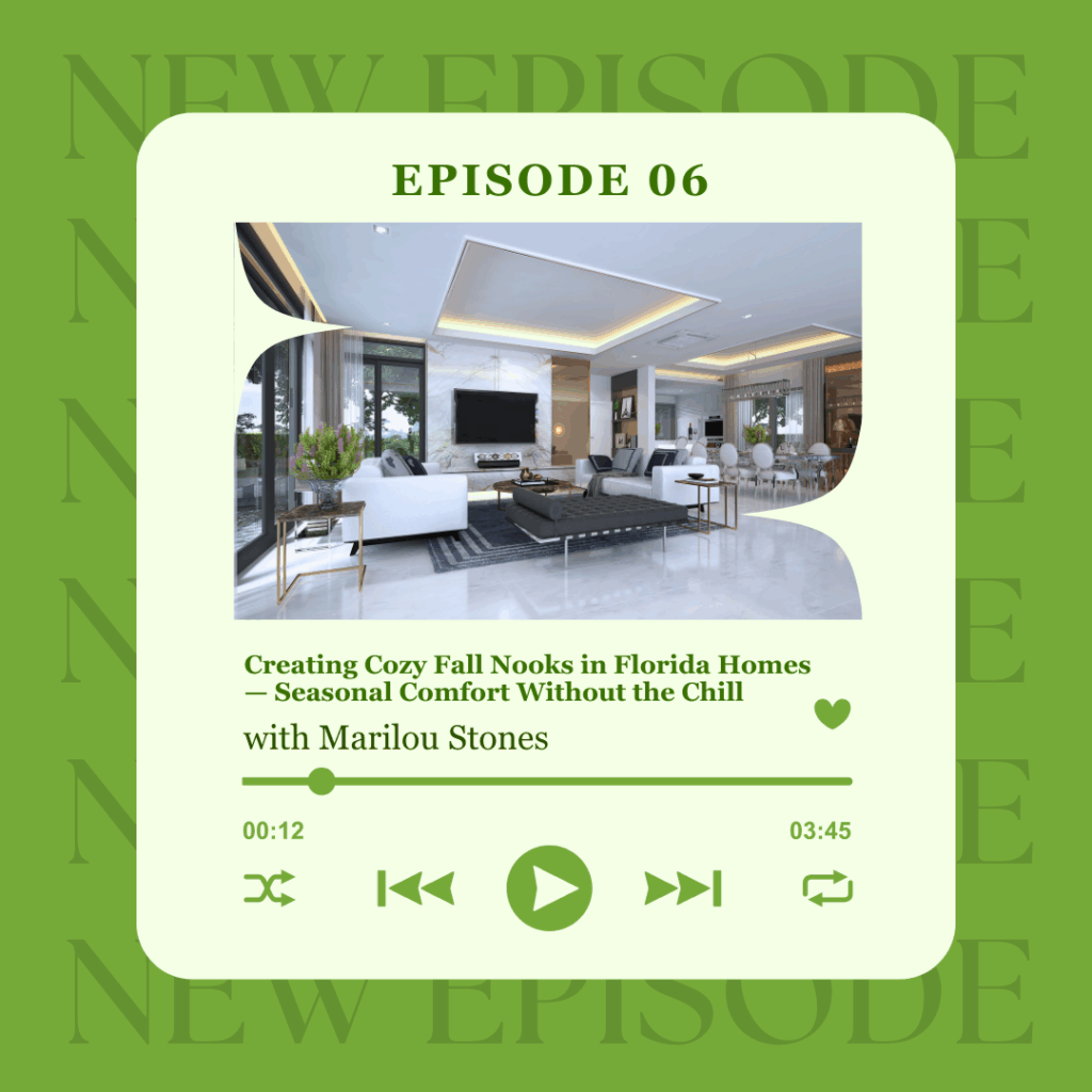 Welcome to this episode of the Stones Design Podcast, where thoughtful design meets real Florida living. In this episode, we explore a common challenge for Florida homeowners: how to capture the essence of fall and create cozy, inviting nooks within their living spaces — without relying on cooler weather.